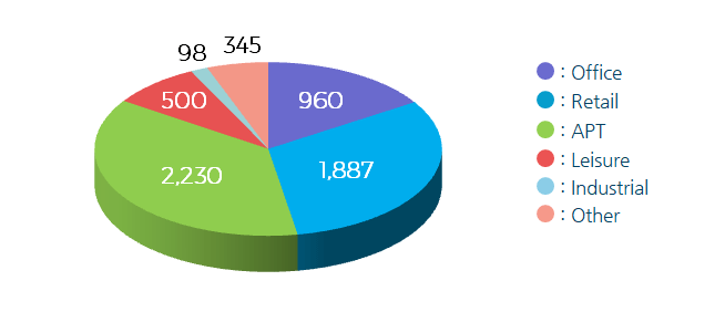| Office | Retail | APT | Leisure | Industrial | Others | Total |