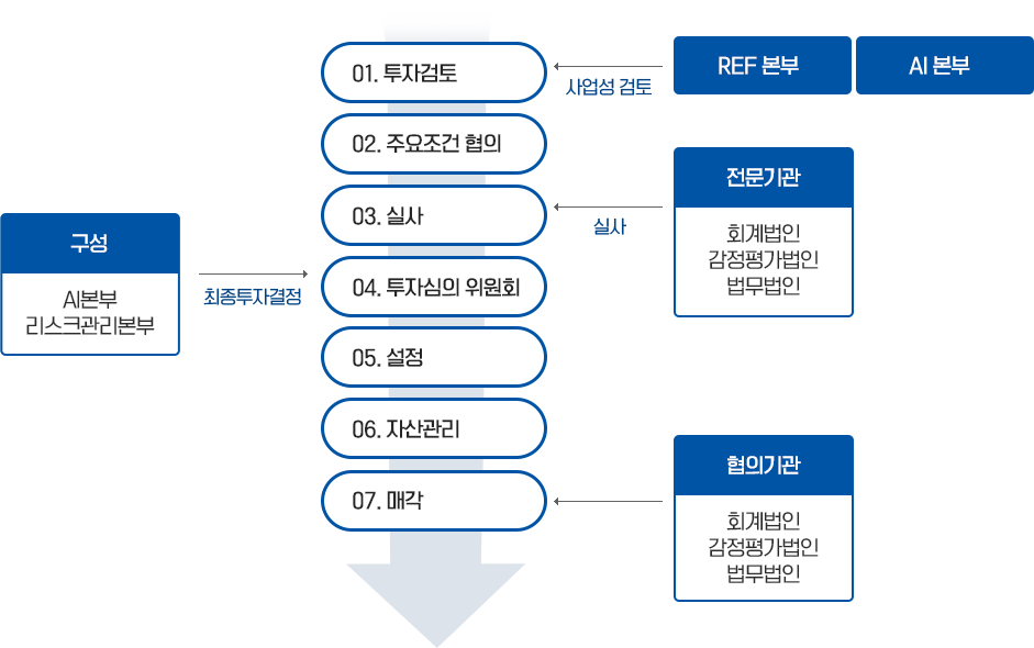 | 투자심의위원회 | - 리스크, 사업성 등을 고려한 최종 투자결정 |